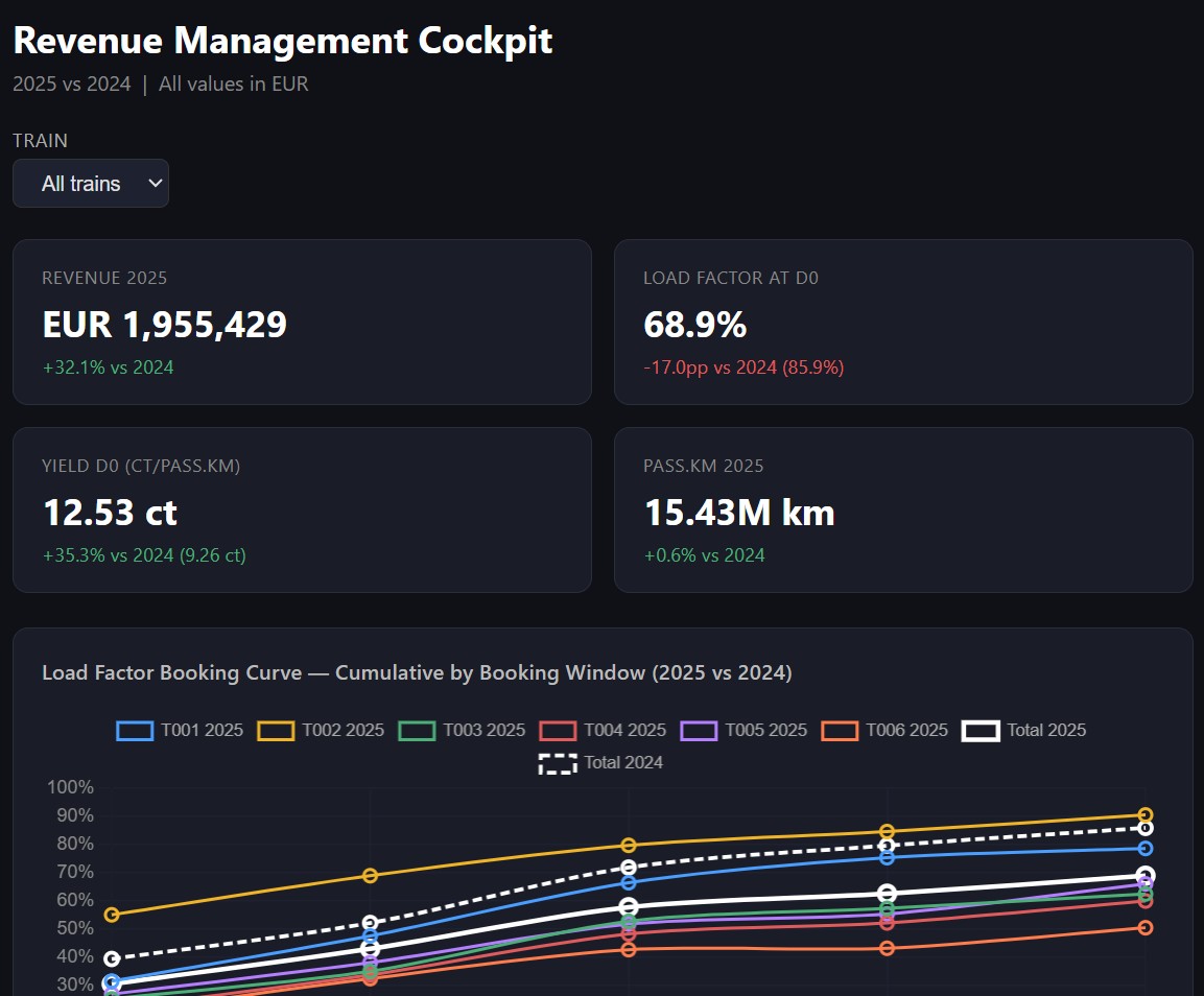 Revenue management system for transport operators that drives higher yield and load factor through AI-based pricing, demand forecasting and decision support.
